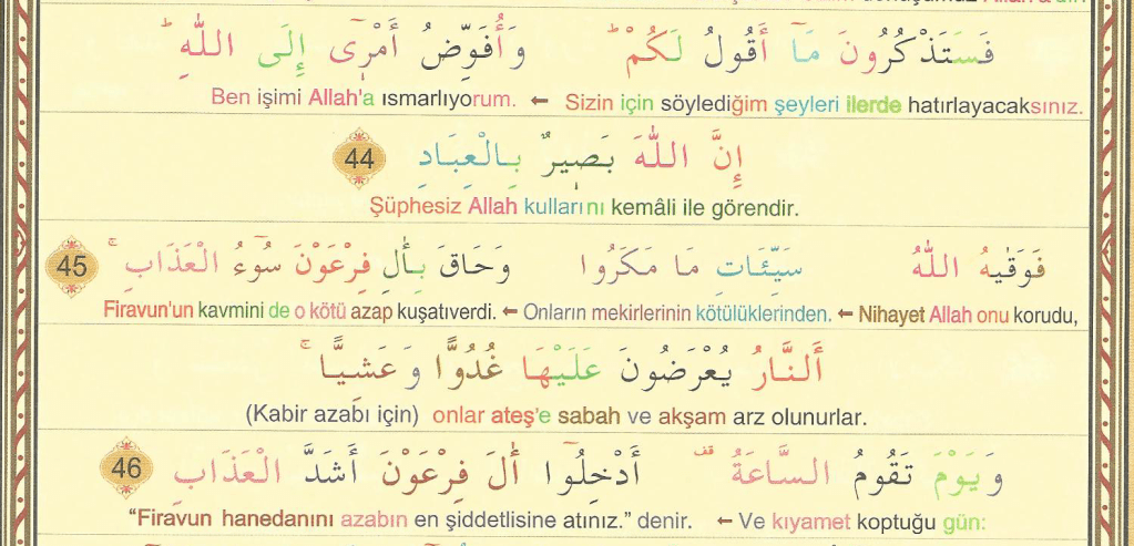 Fe vekahullahu seyyiati ma mekeru ve haka bi ali fir’avne suul azab.