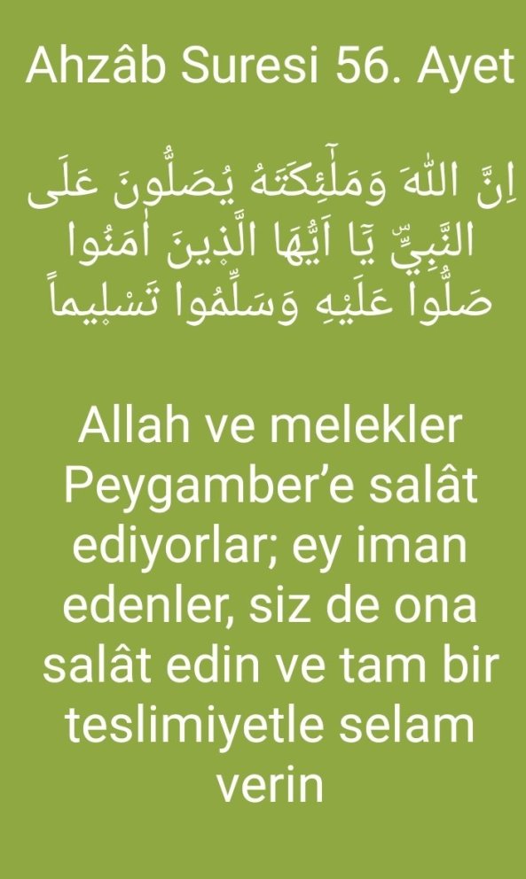 Allah ve melekler Peygamber’e salât ediyorlar; ey iman edenler, siz de ona salât edin ve tam bir teslimiyetle selam verin