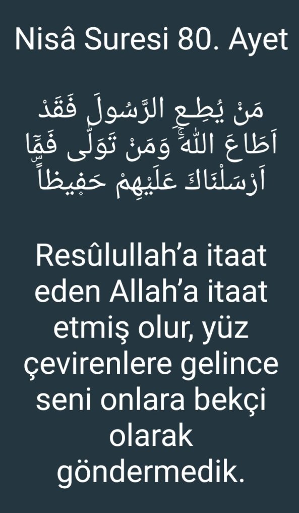 مَنْ يُطِـعِ الرَّسُولَ فَقَدْ اَطَاعَ اللّٰهَۚ وَمَنْ تَوَلّٰى فَمَٓا اَرْسَلْنَاكَ عَلَيْهِمْ حَف۪يظاًۜ