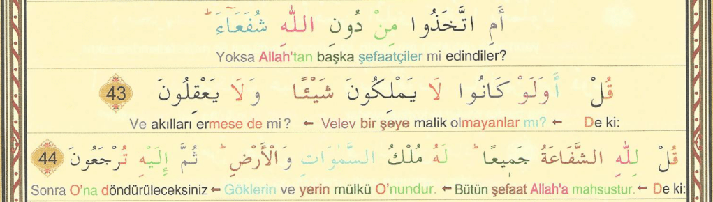 Allahu yeteveffel enfuse hine mevtiha velleti lem temut fi menamiha, fe yumsikulleti kada aleyhel mevte ve yursilul uhra ila ecelin musemma, inne fi zalike le ayatin li kavmin yetefekkerun.